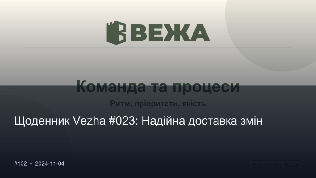 Випуск #026 від 25.11.2024: «Надійна доставка змін» у Vezha. Про рішення тижня без зайвої теорії — тільки практичний результат і наступний фокус.