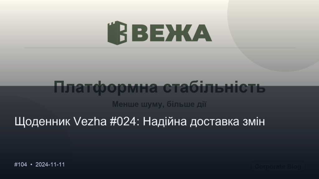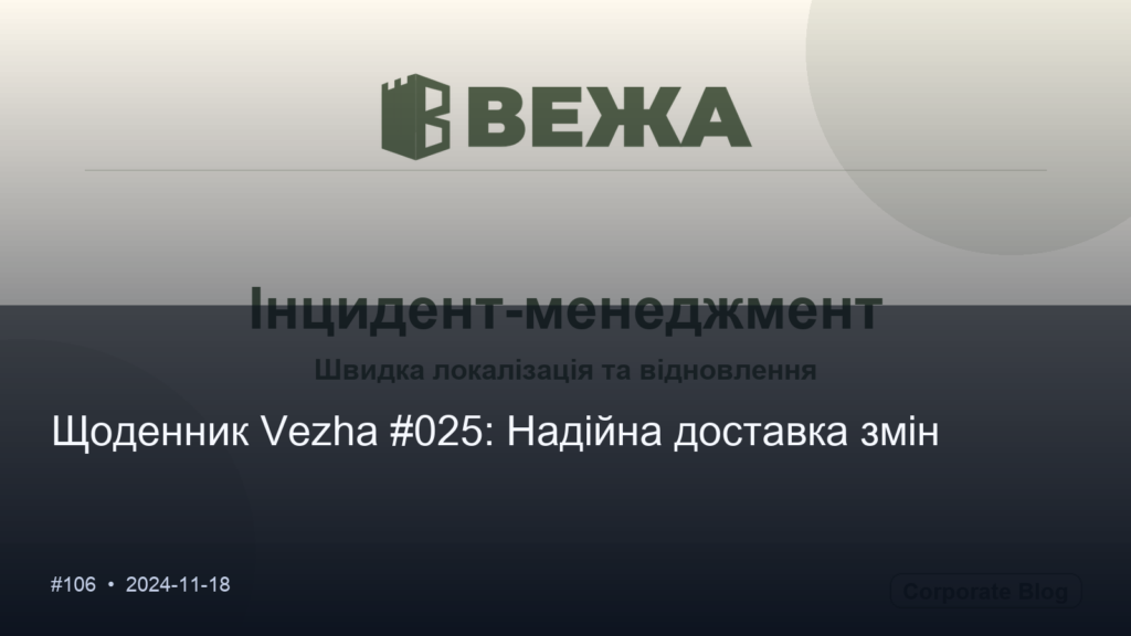 #025 (18.11.2024) у блозі Vezha: тема «Надійна доставка змін», операційний ефект від оновлень і пріоритети найближчої ітерації.