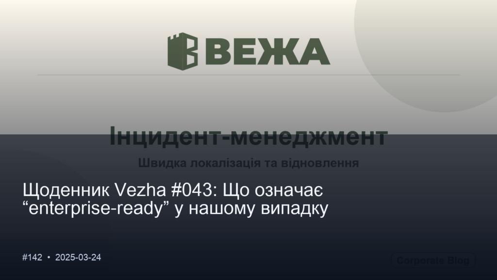 Щотижневий запис Vezha #043: «Що означає “enterprise-ready” у нашому випадку». Пояснюємо, що спрацювало на практиці та як це вплинуло на стабільність сервісу.